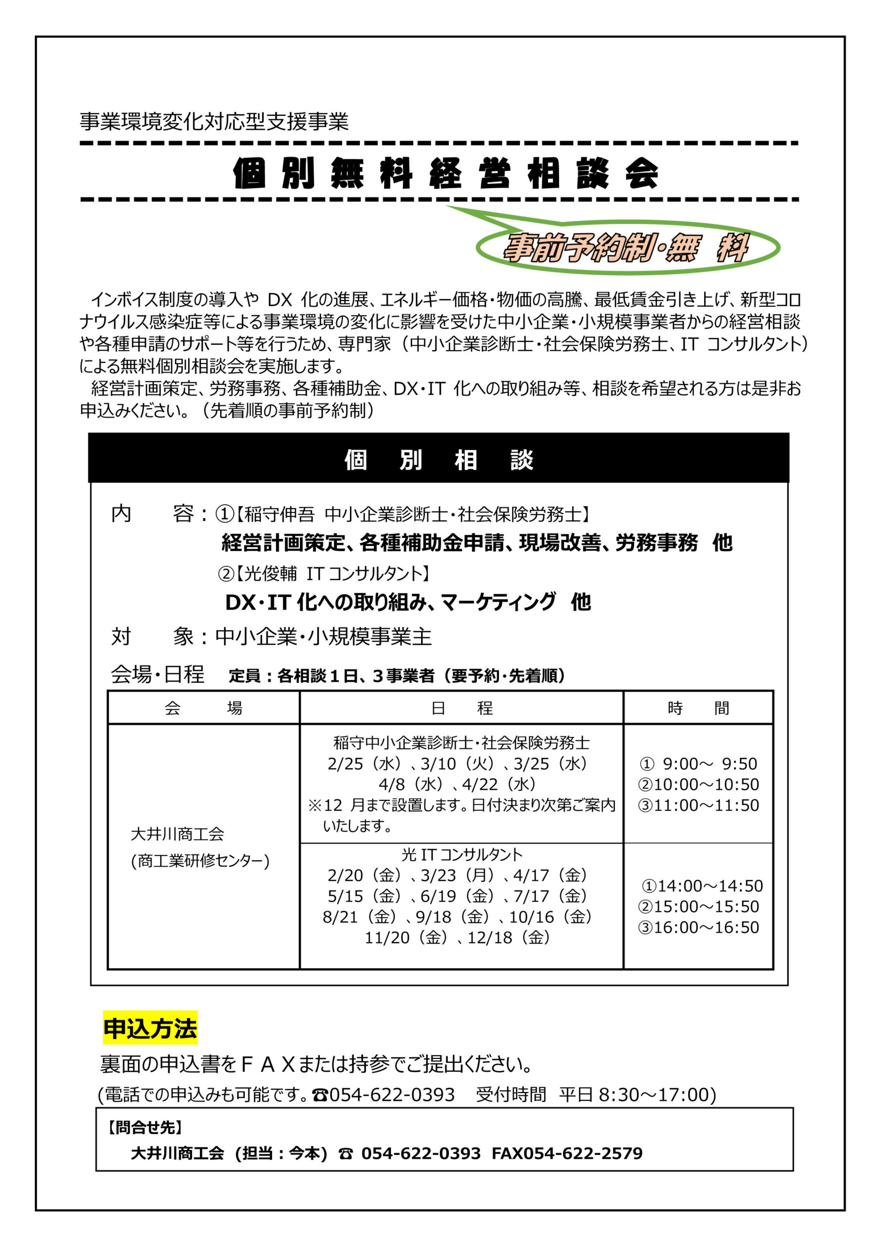 【事前予約制・無料】個別無料経営相談会のお知らせ